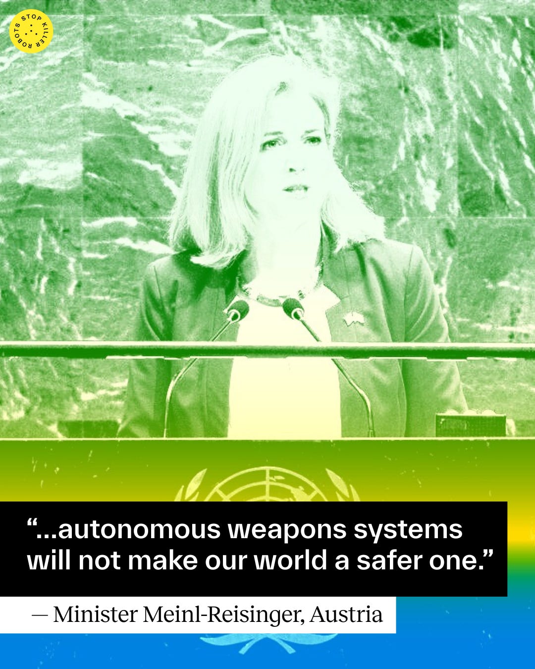 6. Minister for European and Int’l Affairs Beate Meinl-Reisinger: “we must ban weapons which kill indiscriminately.“