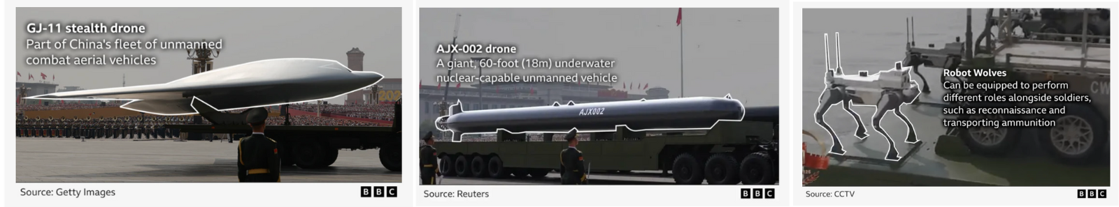 As discussions on regulation move forward slowly, innovation and appetite for increased military lethality in the world intensifies. While discussions were taking place in Geneva, China held its Victory Day Parade, in Beijing’s Tiananmen Square. The September 3 event was attended by dozens of Heads of State including Russia’s Vladimir Putin, North Korea’s Kim Jong Un. The Parade showcased the country’s military arsenal, including a swathe of AI-powered weapons that can operate on land sea and air.